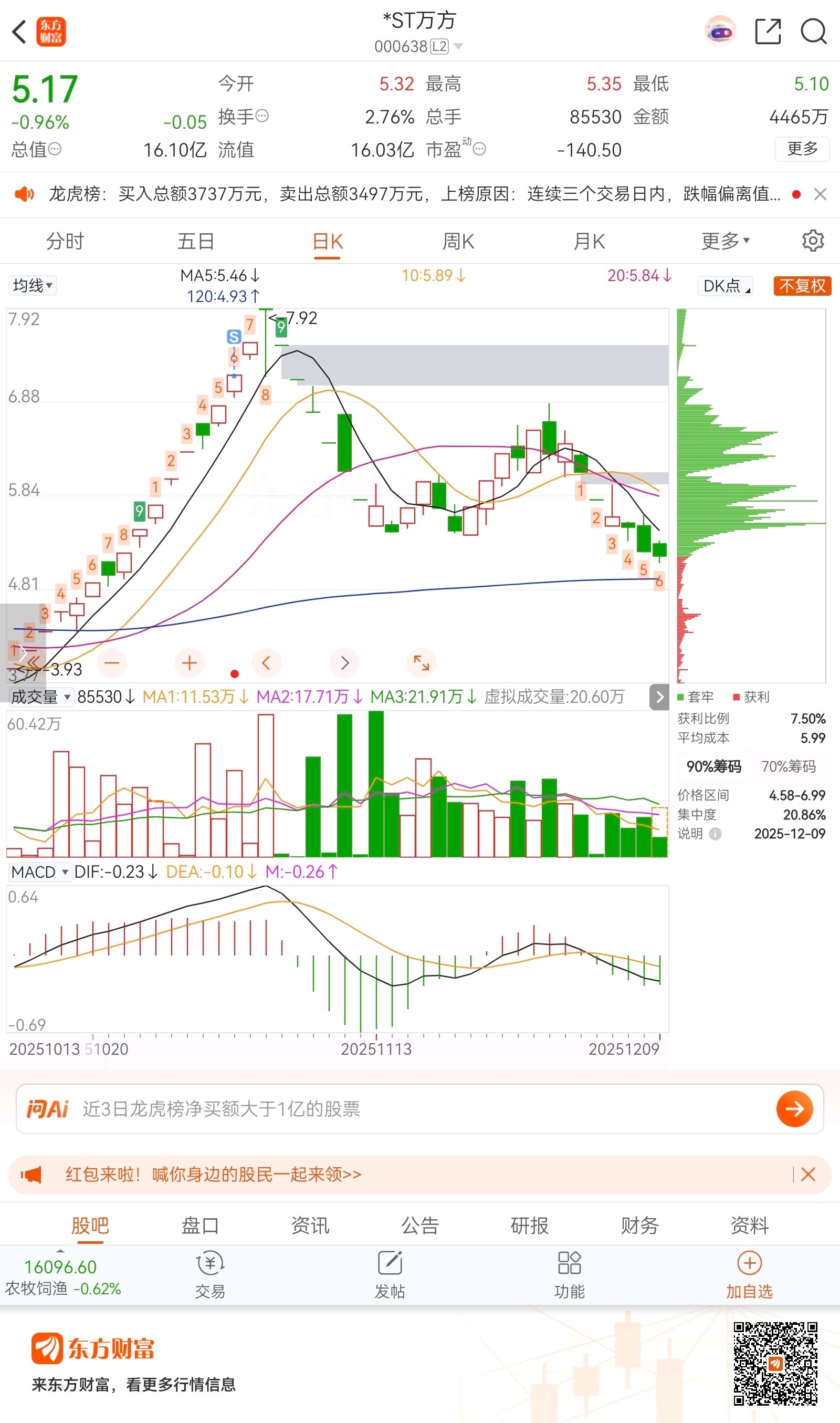 $*ST万方(SZ000638)$ 年底还是以防守为主。一个做ST多年老韭菜的忠告!!机会多的是,没必要这个节点博弈。立案结果出来前万方就是破3块我我也不会心动。