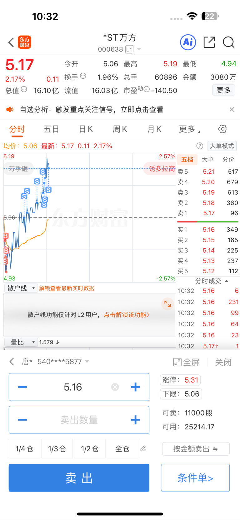 $*ST万方(SZ000638)$ 空头继续给我叫,叫大声点,恐怕只有羡慕嫉妒的份啦