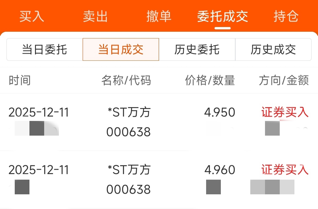 $*ST万方(SZ000638)$ 三成仓位了,有点危险了!明天做T,不增加仓位了。除非跌停