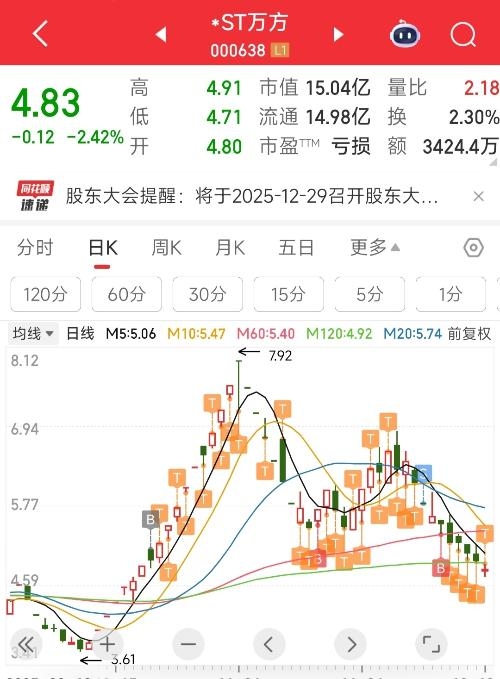 $*ST万方(SZ000638)$ 看盘面,只是超跌,盘中拉起,今天或者周末不会有公告的,大家别期待了。不过九连阴了,下周有低点可以大胆干,而且董秘昨晚发了个所谓大利空今天收盘都拉起来了,下周绝对反弹,我从下周开始只加不减