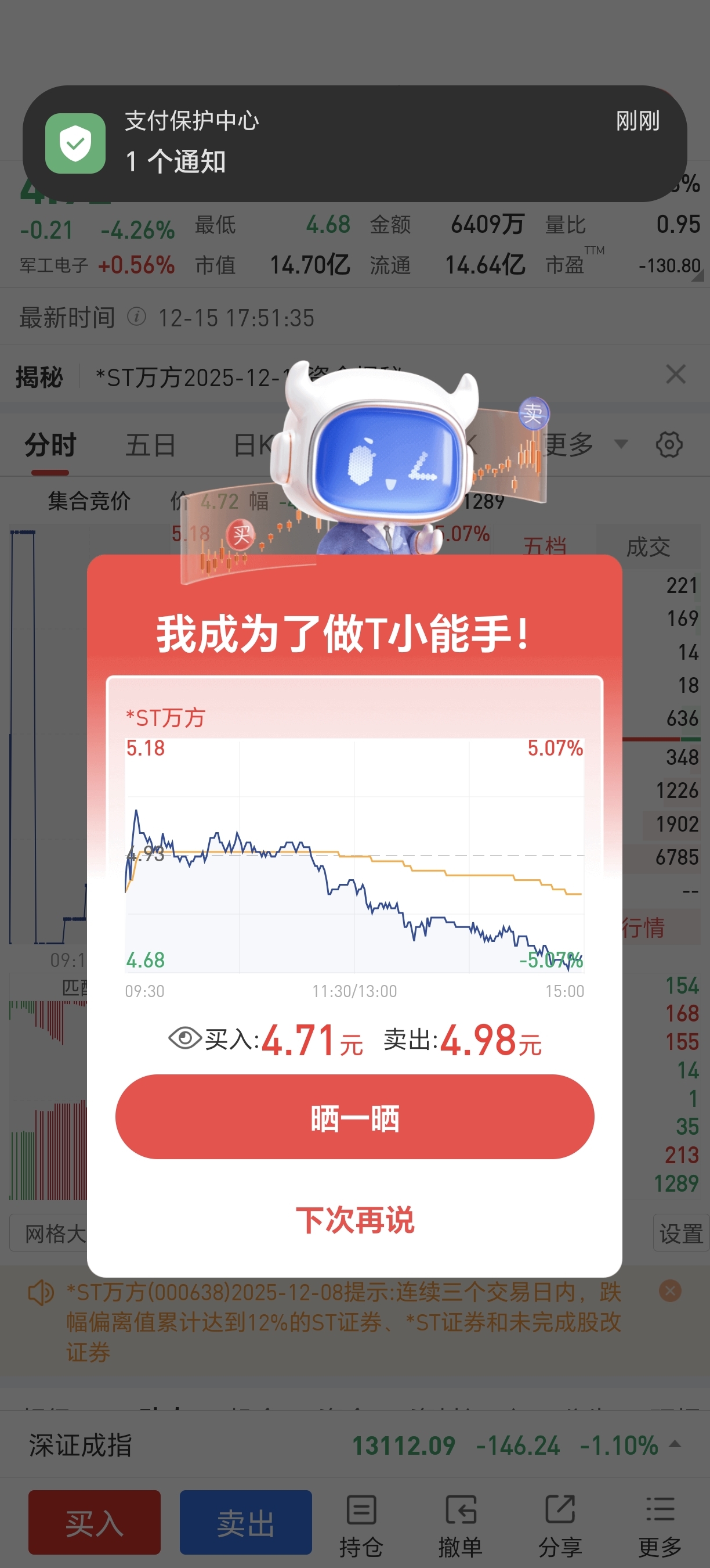 $*ST万方(SZ000638)$ 来,主力,你的筹码今天我又吃260手,看看谁搞谁?