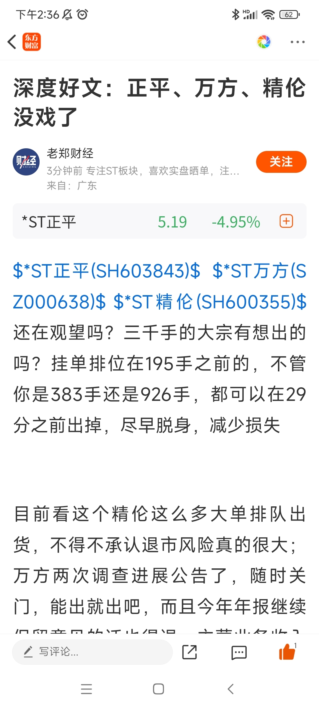 $*ST万方(SZ000638)$ 这个老郑财经,之前发了那么多雄文唱多精伦,万方,原来是骗人入套等一字跌停后,删帖,再推销大宗交易的托