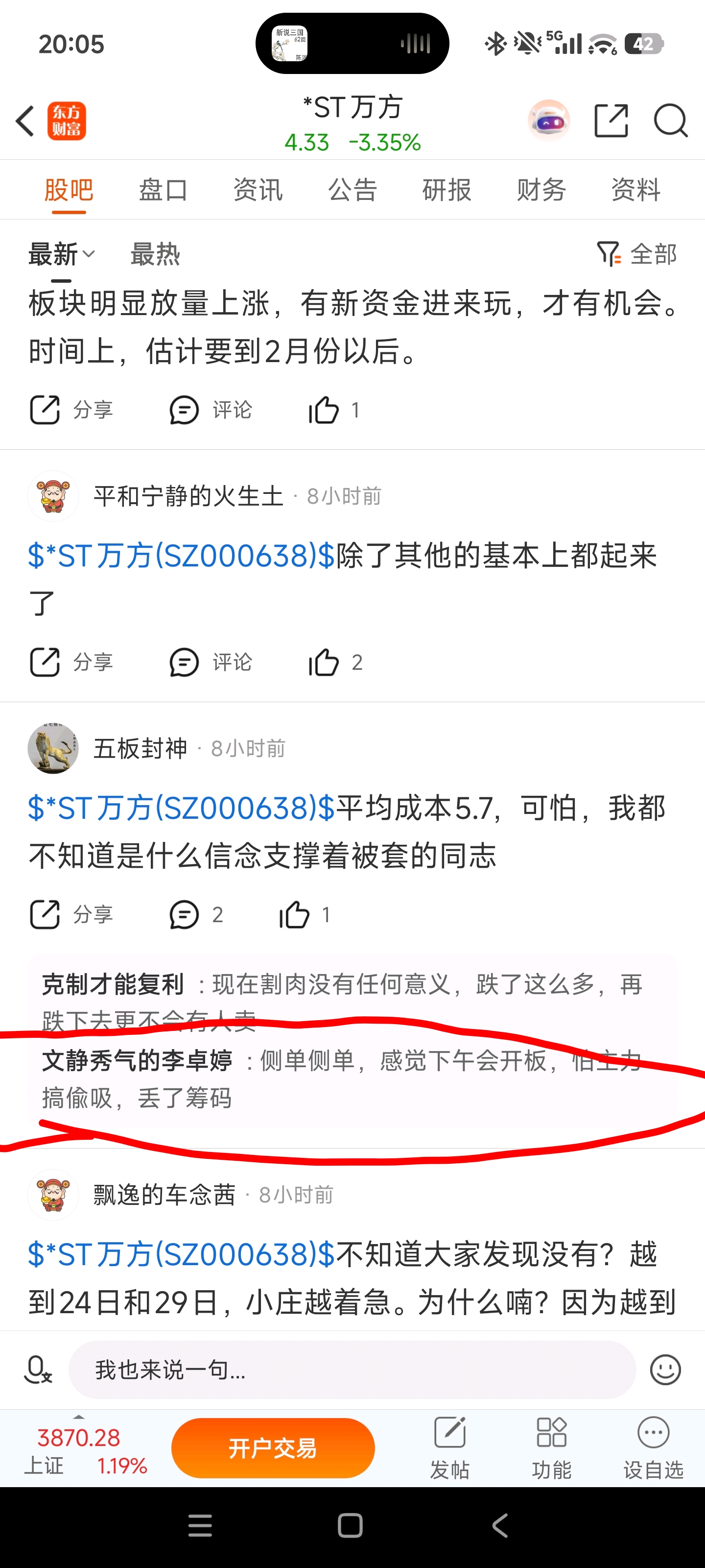 $*ST万方(SZ000638)$ 中午收盘之前就提醒你们了