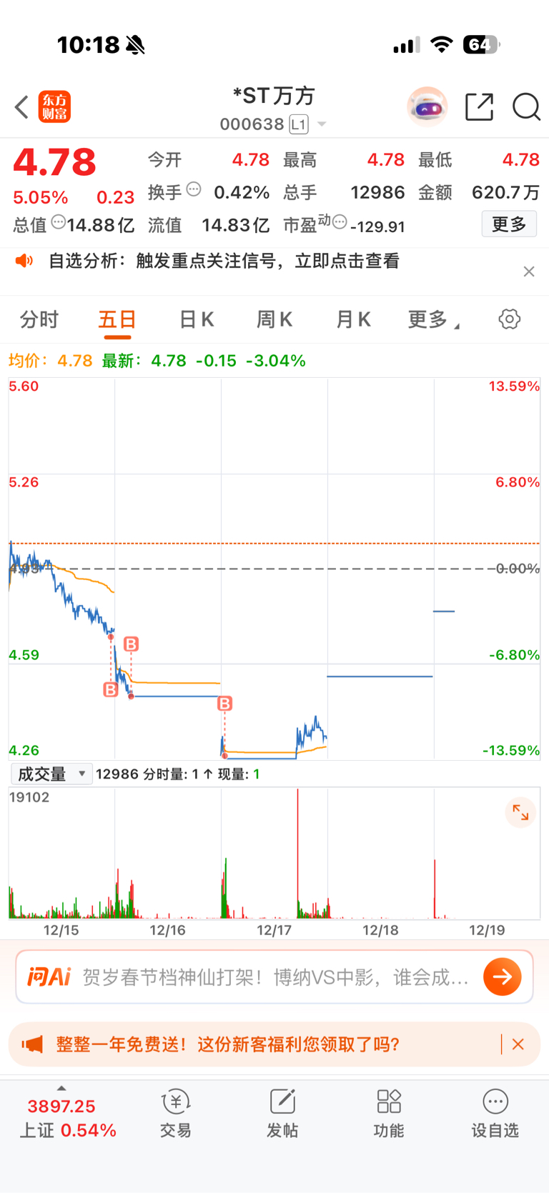 $*ST万方(SZ000638)$ 无论贴吧怎么唱,坚持自己想法!!!说了跌停就加仓!今天这个板就是利润了