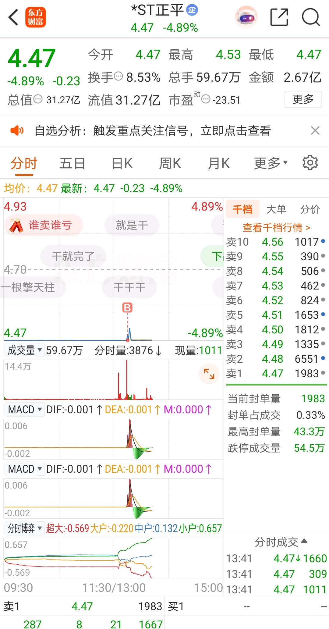 $*ST万方(SZ000638)$ 万方买不进去了,就去正平买十手,助力一下老龙头