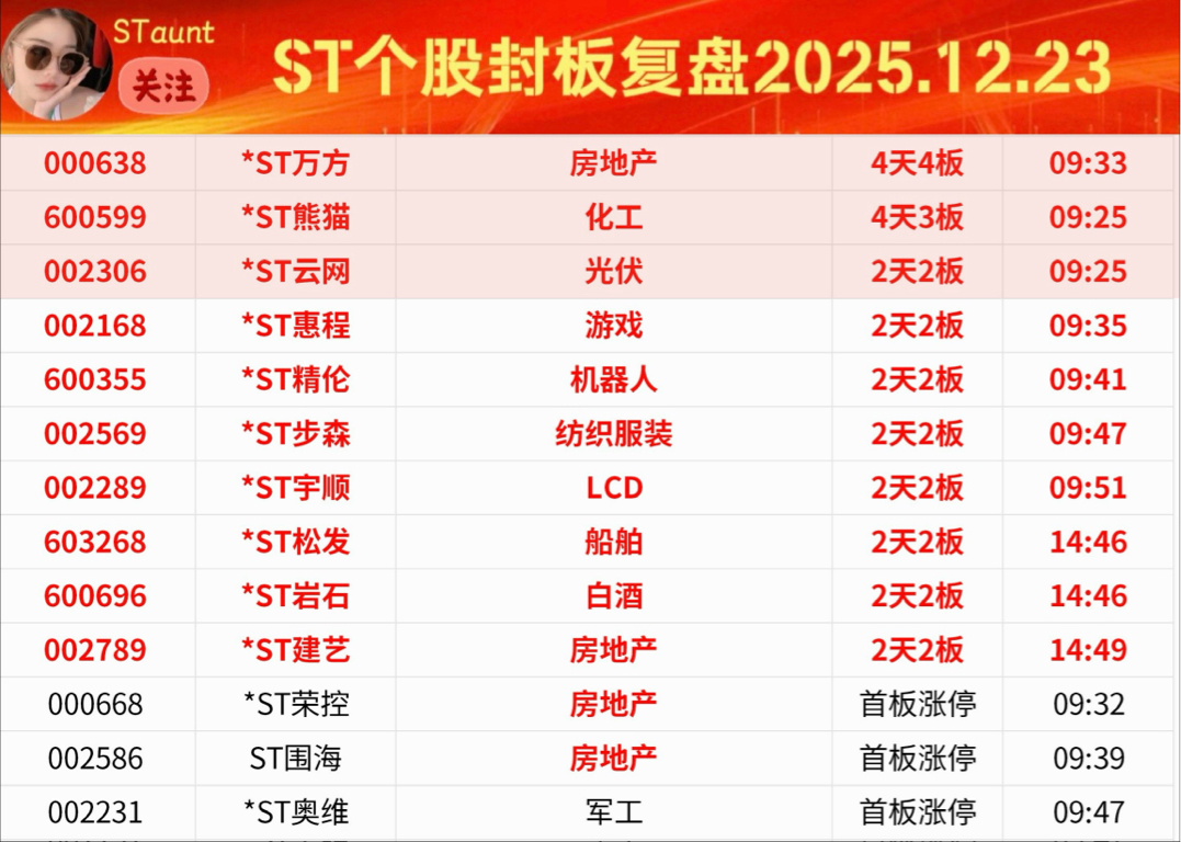 ST个股封板复盘A
