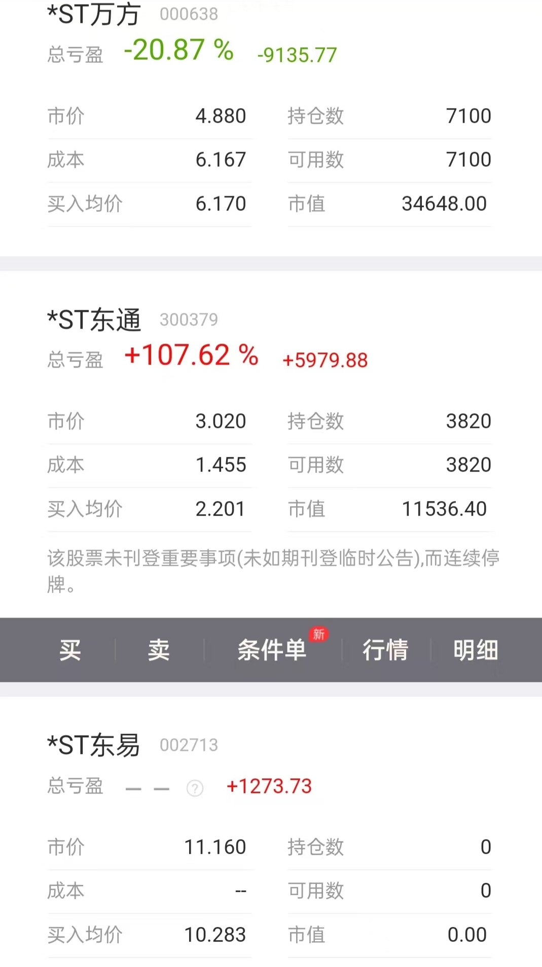 家里的有个小账户,经常跟着我买票,原来让她全部埋伏在东通,后来我又让她大部分换了万方,结果套住了。而东通又错过了几天的暴利,说实话我挺后悔