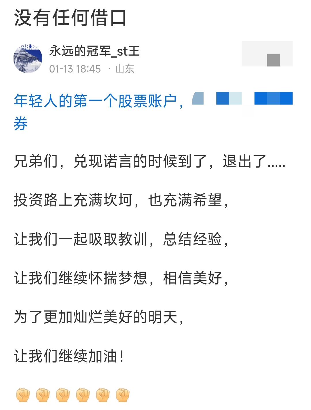 2026年1月13日(辞忆十四年一月十三日),永远的冠军正式宣布退出东财网股吧。