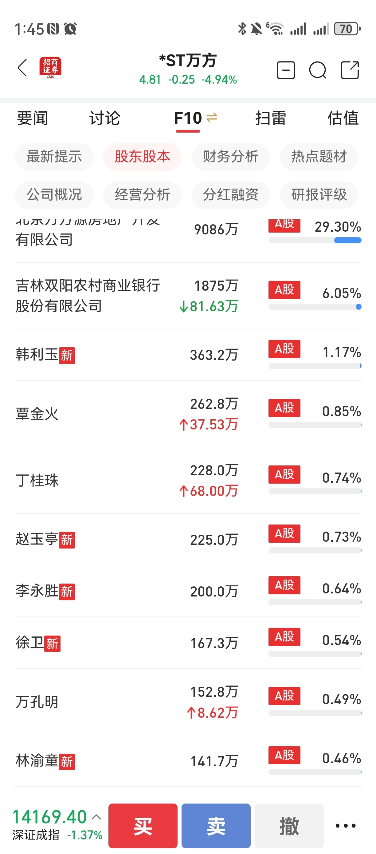 $*ST万方(SZ000638)$ 个人股东一个没跑,还持增