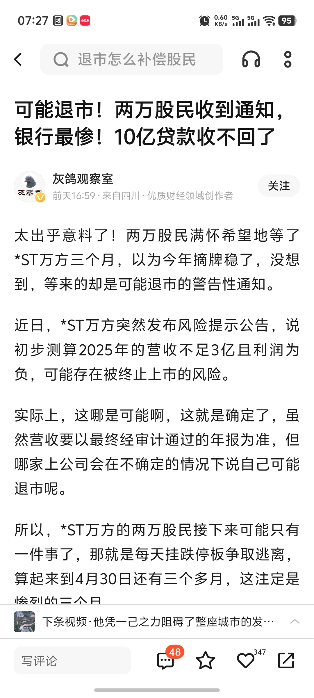 $*ST万方(SZ000638)$ 3个月退市,大家别怕可以出得来