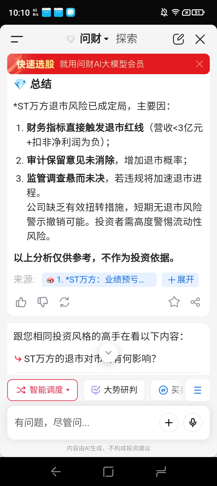 问财上面的官方回答,无意唱空,关注万方是因为它连续跌停,我只想翘板搏一搏地天板!