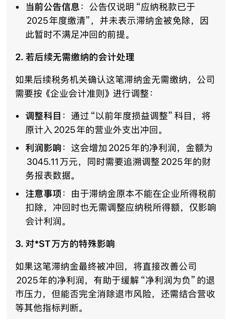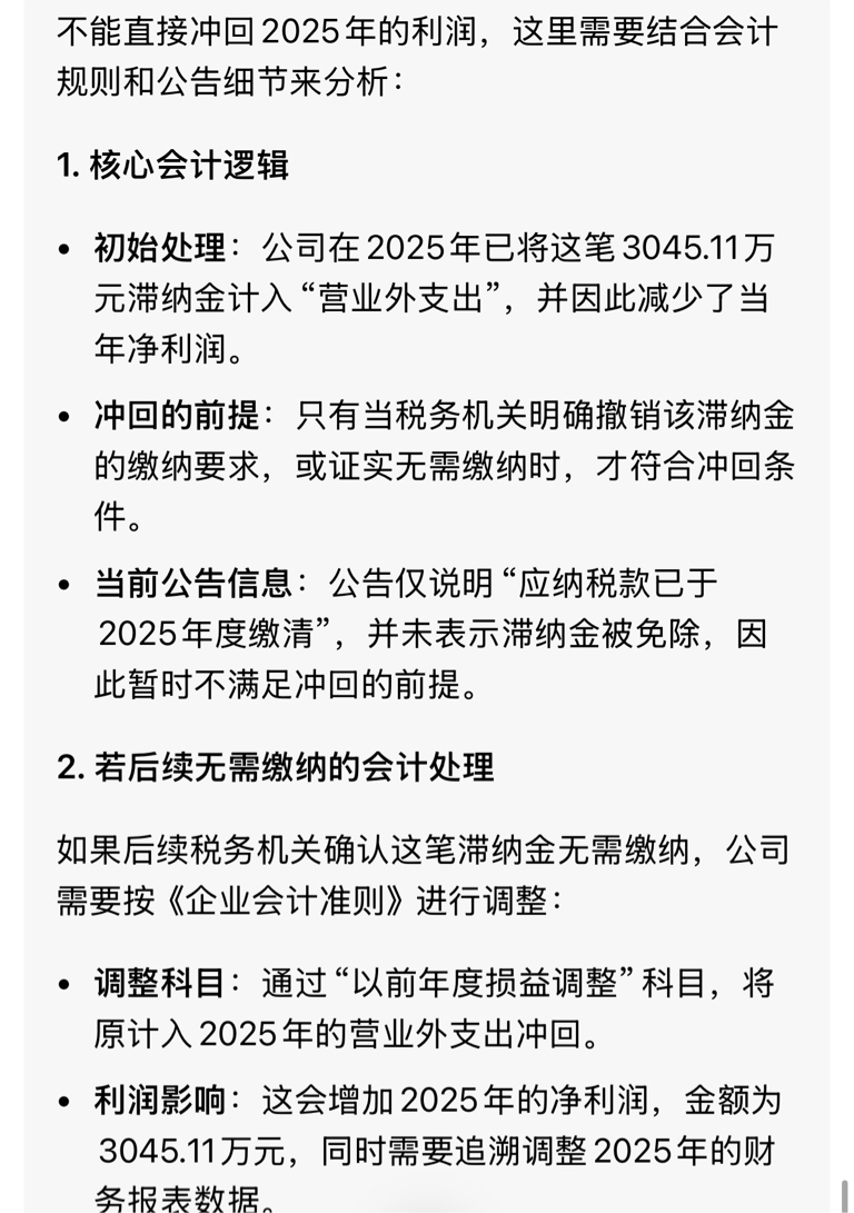 就是说如果税务局确认这笔滞纳金免除上缴,就能冲回利润,净利润为负风险暂时解除了?