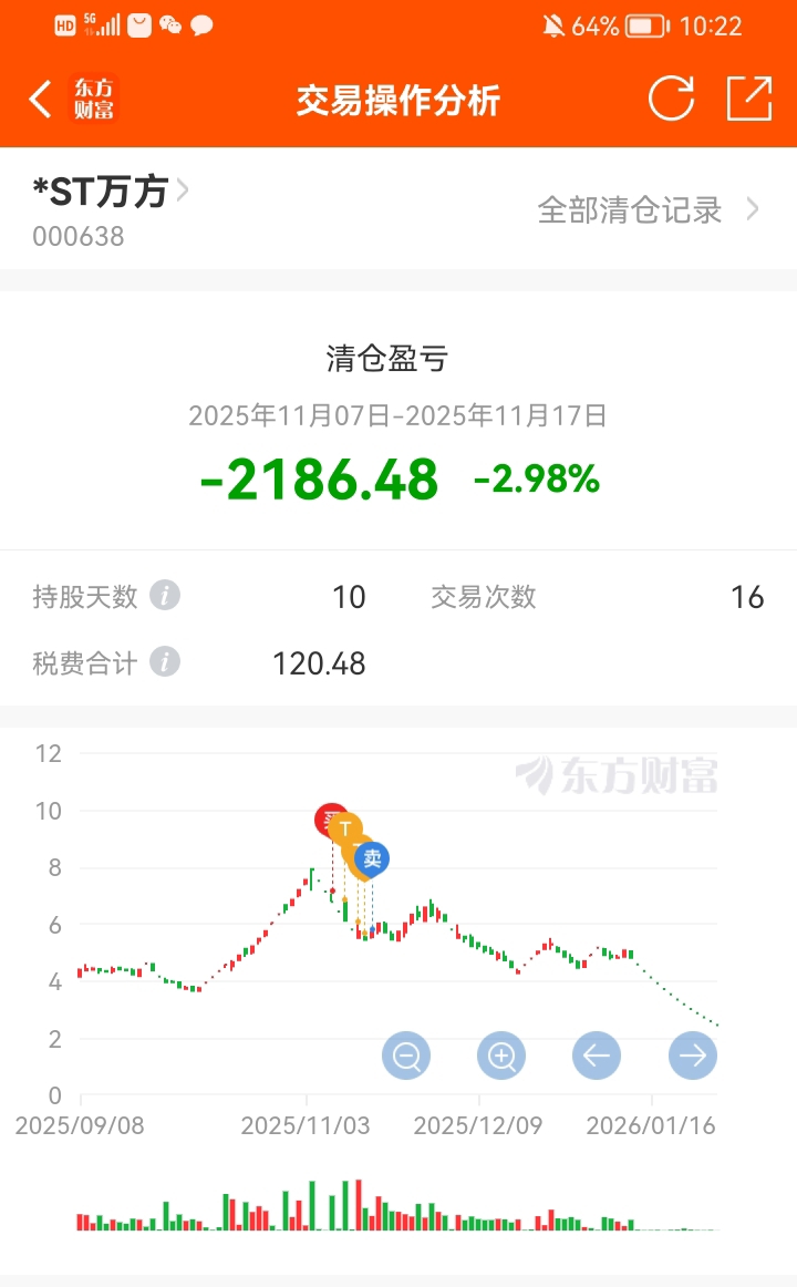 $*ST万方(SZ000638)$ 万方这票亏了我2186块钱!半个月工资就当喂枸了!不过在万方亏的钱我抄底英飞拓赚回来了!