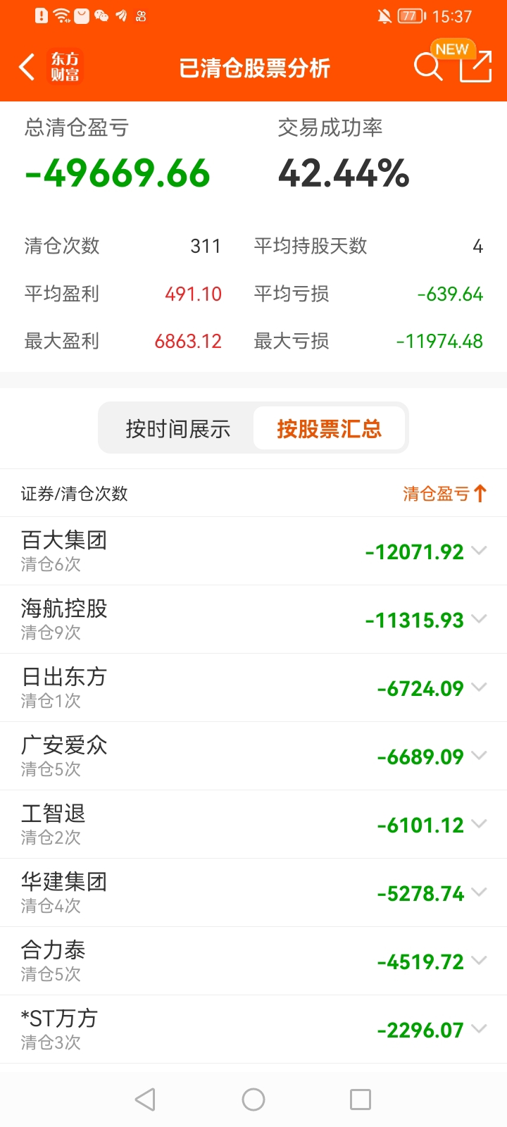 两个账号全部亏损,买的ST工智、ST元成、ST鹏博士、ST富润、ST高鸿全都退市