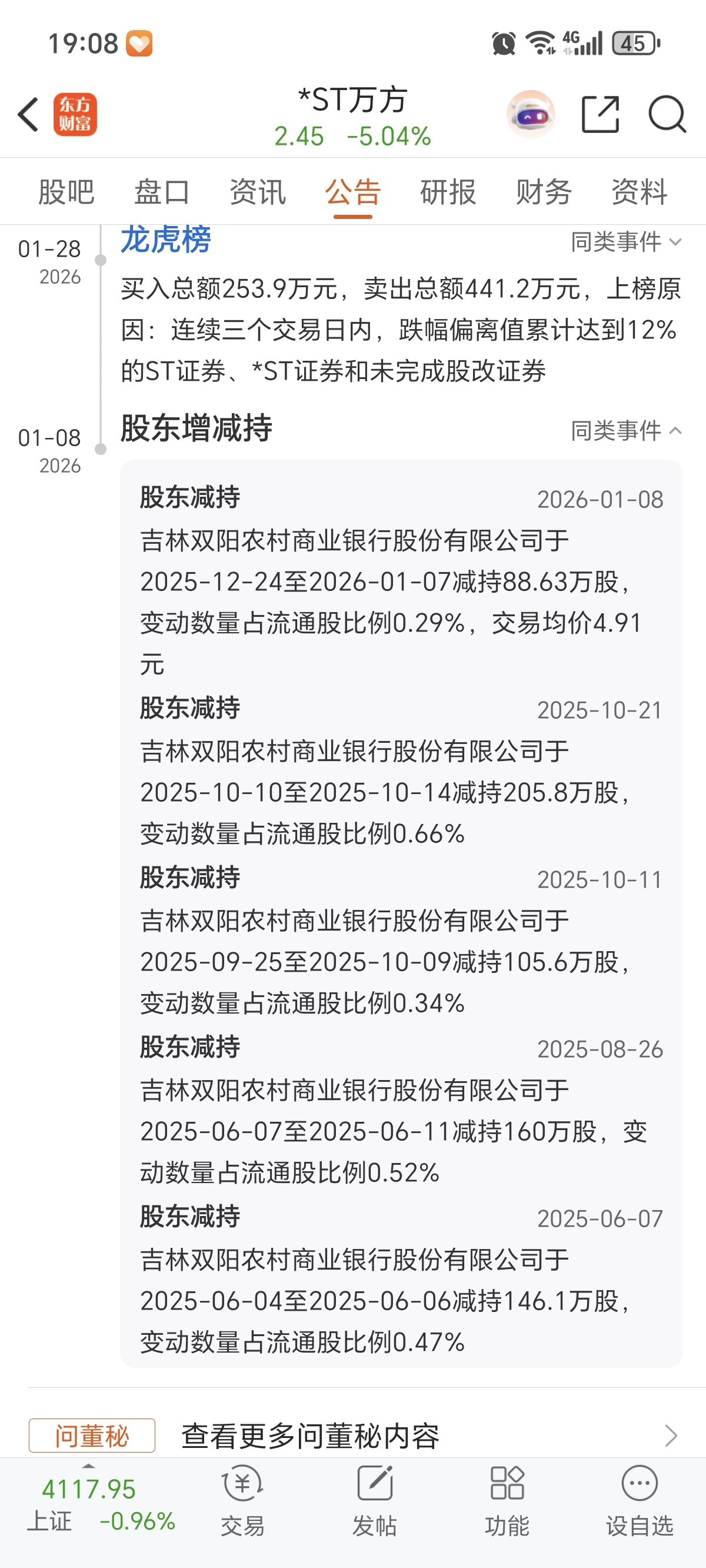 $*ST万方(SZ000638)$ 还得是二股东消息灵通,早早计划好开始减持跑路