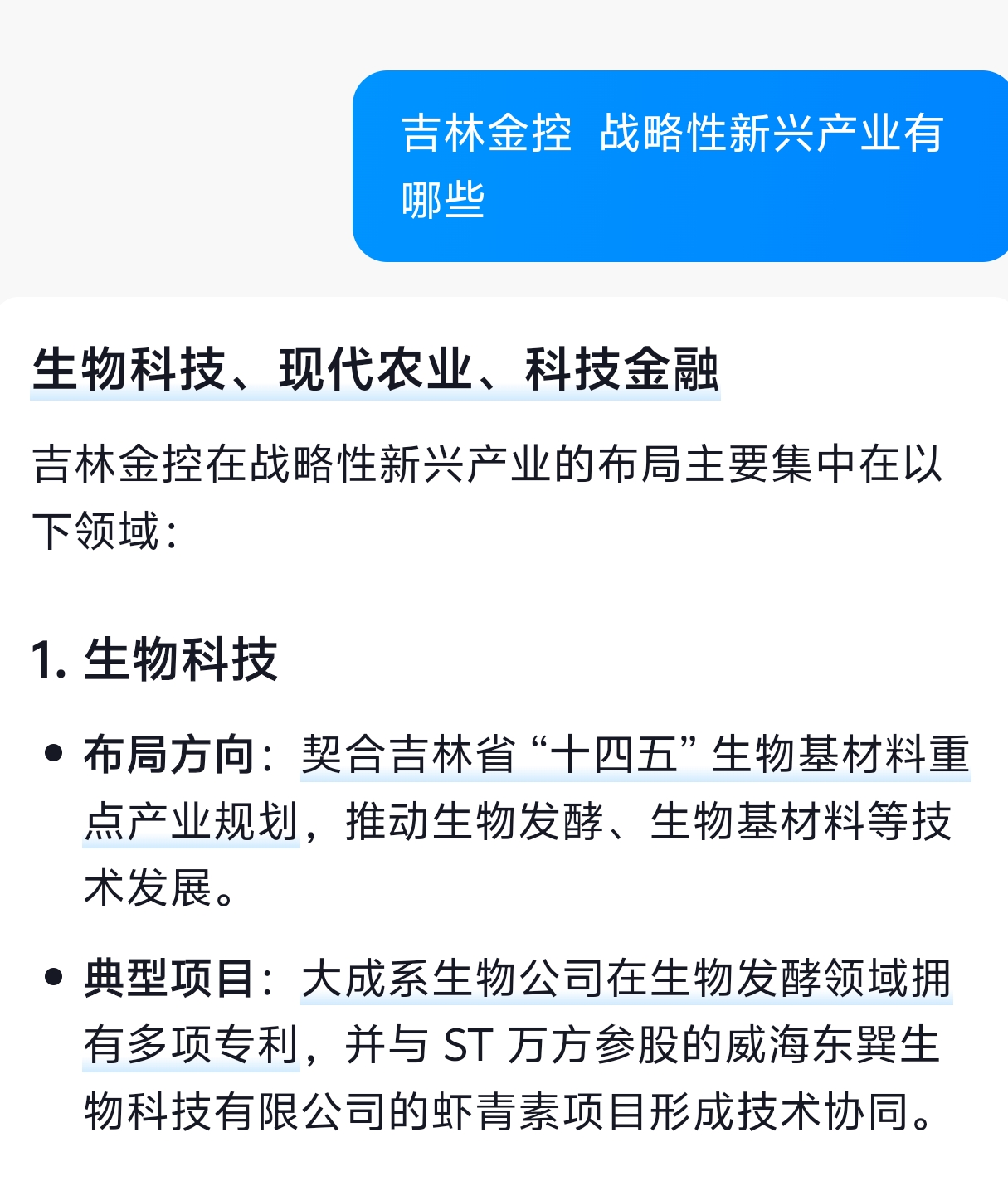 吉林金控又不是只有长光卫星一个战略新兴产业,我看这个生物公司完全可以!1,他和万方产业协同,