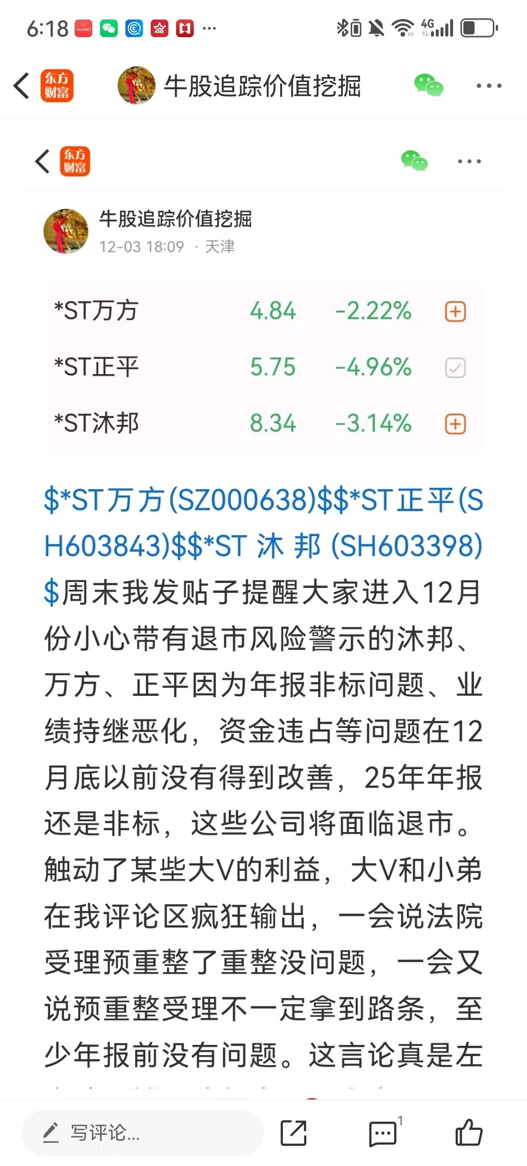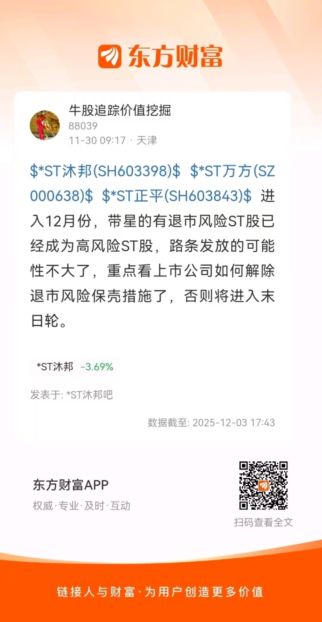 $*ST万方(SZ000638)$ $*ST沐邦(SH603398)$ $*ST正平(SH603843)$