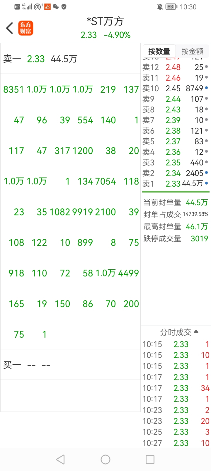 ST万方第一页有6个万手大单。庄家和主力也在抢跑。这周比上一周封单数量还大。已经