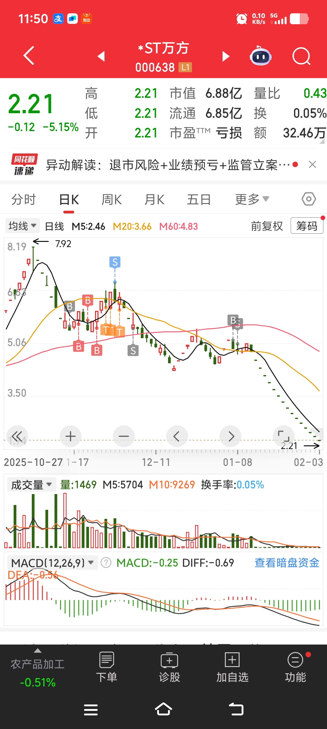 $*ST万方(SZ000638)$ 差点被带走