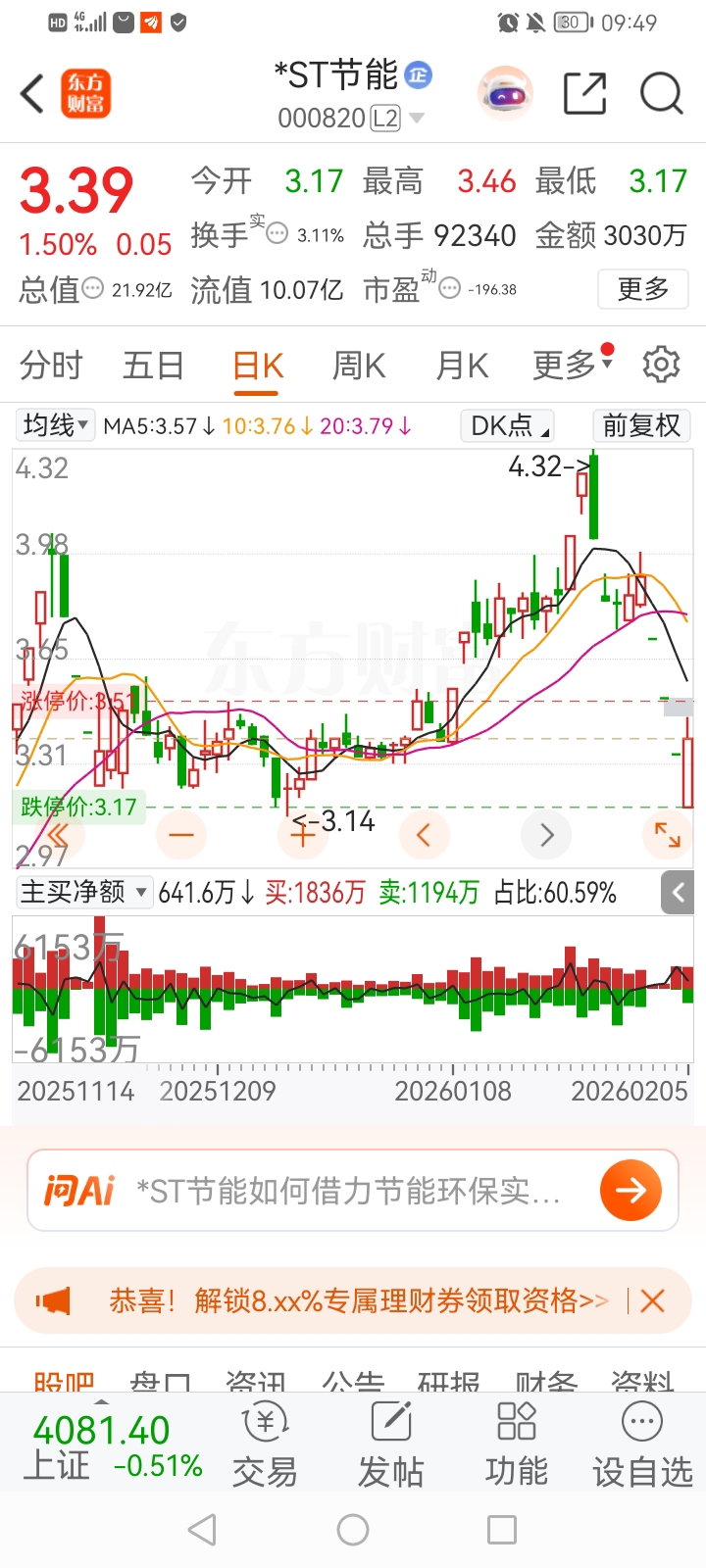 万方的散户真惨!节能也有退市风险才三个跌停板就翘了放人了!万方开板我就补仓!