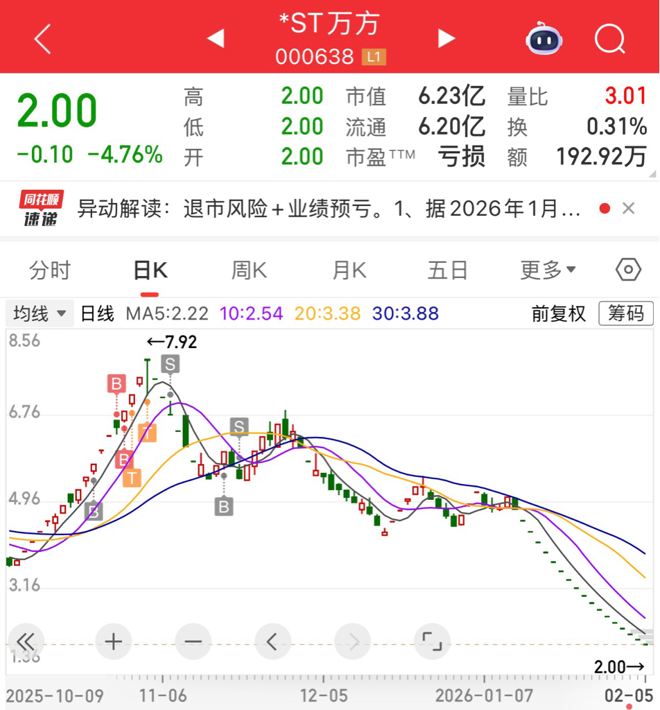 $*ST万方(SZ000638)$ 前两个月看到退市公告,我直接挂跌停跑,以为会腰斩,没想到吃了3个板就跑出来了,很庆幸。当时还有人说洗盘,董秘配合洗盘哈哈哈。只有我知道当时那个公告,在a股历史上退市概率100%