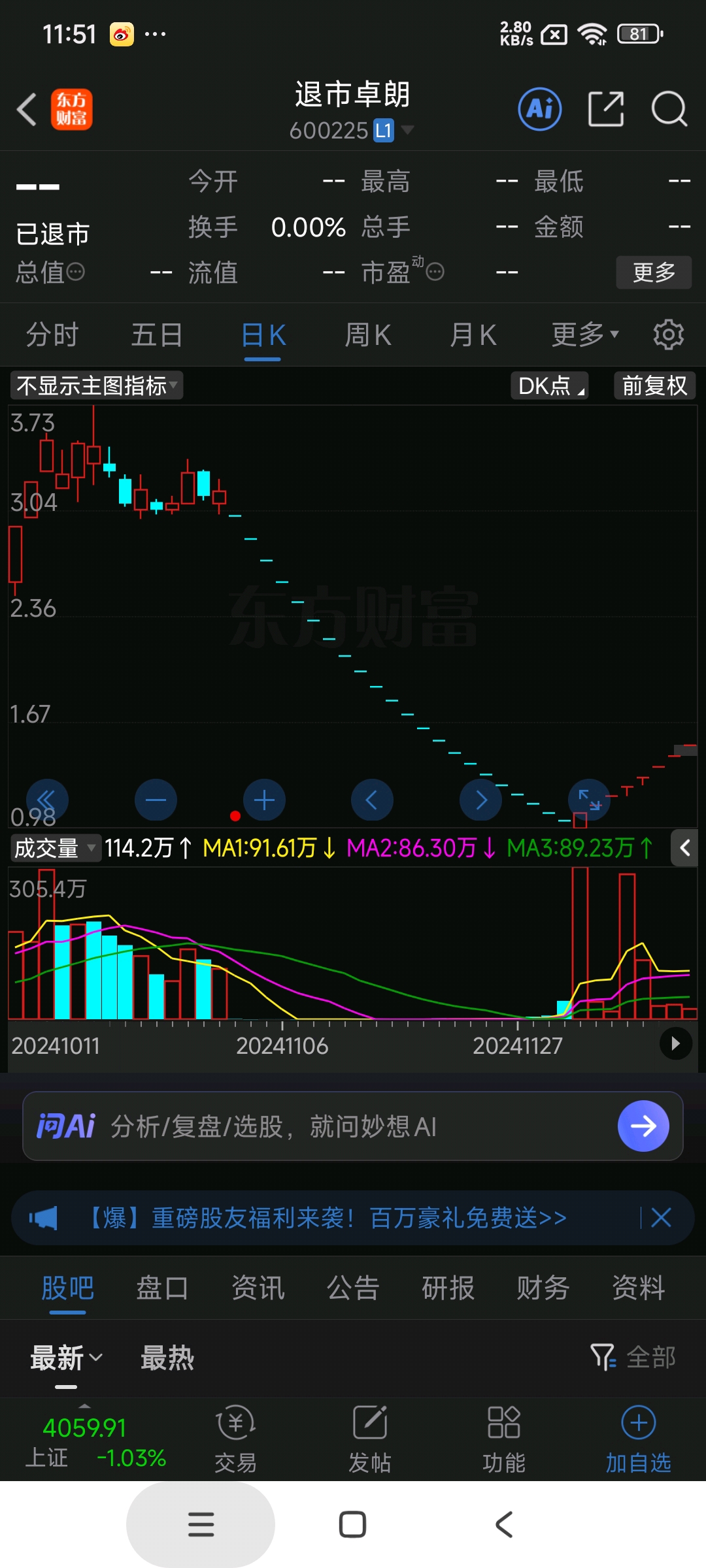 买了这个,吃了18个跌停,怎么办?*ST万方跌停走出18连板,18天
