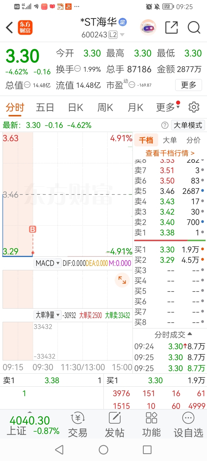 海华有利好消息第七个跌停板就翘开板拉红了,万方没有利好19个跌停板都不放人!ST