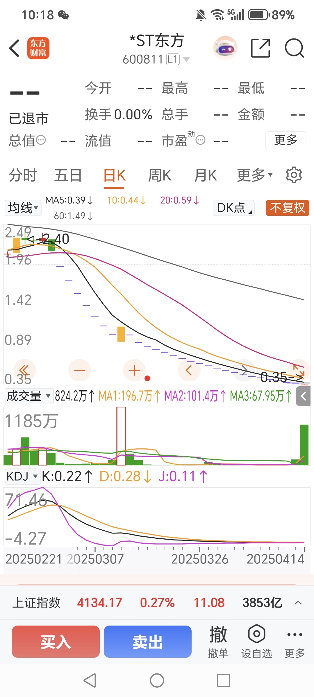东方集团中间也是有这样一个地天板,然后又是很多一字板。买st万方的都是胆子大的吓