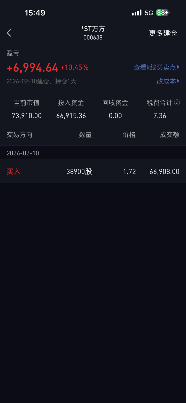 $*ST万方(SZ000638)$ 希望你该股的主力有点血性,千万别像岩石的主力,今日本人继续挂跌停多1-2分3-400手分单绝不撤单陪你们末日轮,主力今天意图非常明显,放心,心理上跌停会把今天胆小的洗出去,没敢买的那些人他们99%依然不敢买也不会买,末日轮4-8个涨停,你们主力自己看着办。