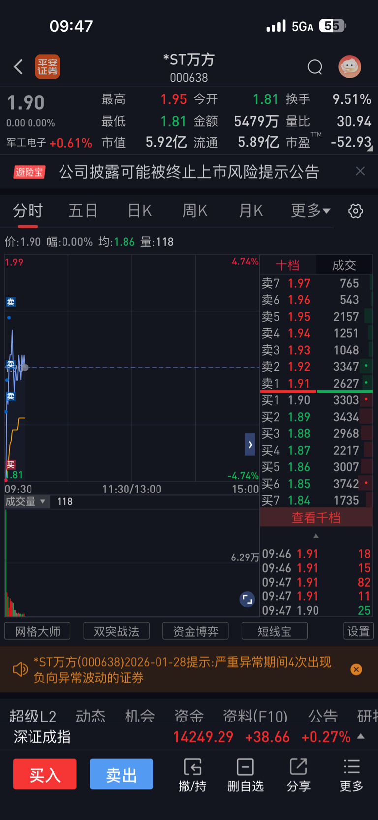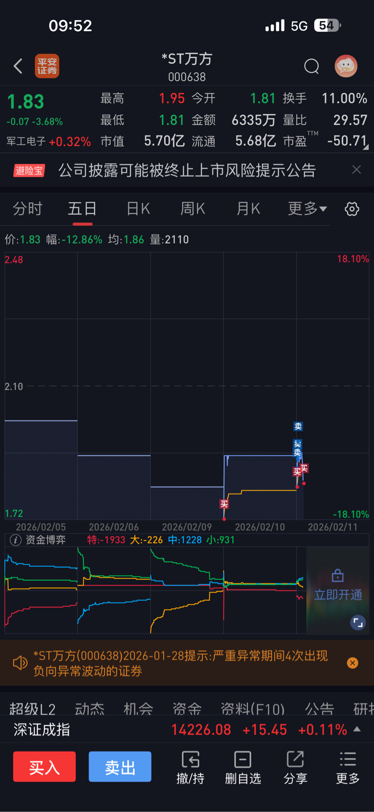 $*ST万方(SZ000638)$ 你们自己看到个人办。反正我是盈利的。20个跌停的筹码,我估计我均价在1.50以下,你们主力随意。
