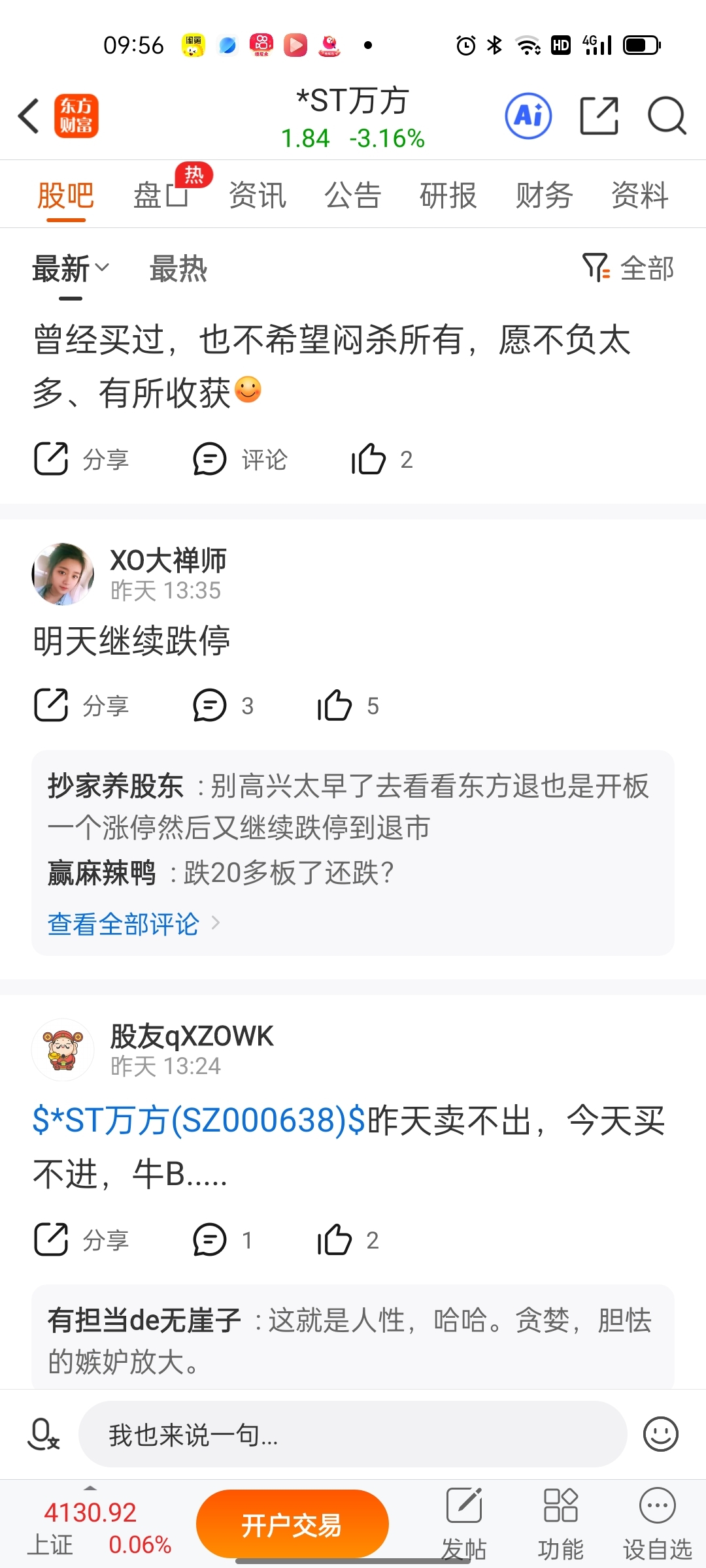 温馨提示: 1.根据《证券法》规定,禁止编造、传播虚假信息或者误导性信息,扰乱证券市场;2.用户在本社区发表的所有资料、言论等仅代表个人观点,与本网站立场无关,不对您构成任何投资建议。用户应基于自己的独立判断,自行决定证券投资并承担相应风险。《东方财富社区管理规定》