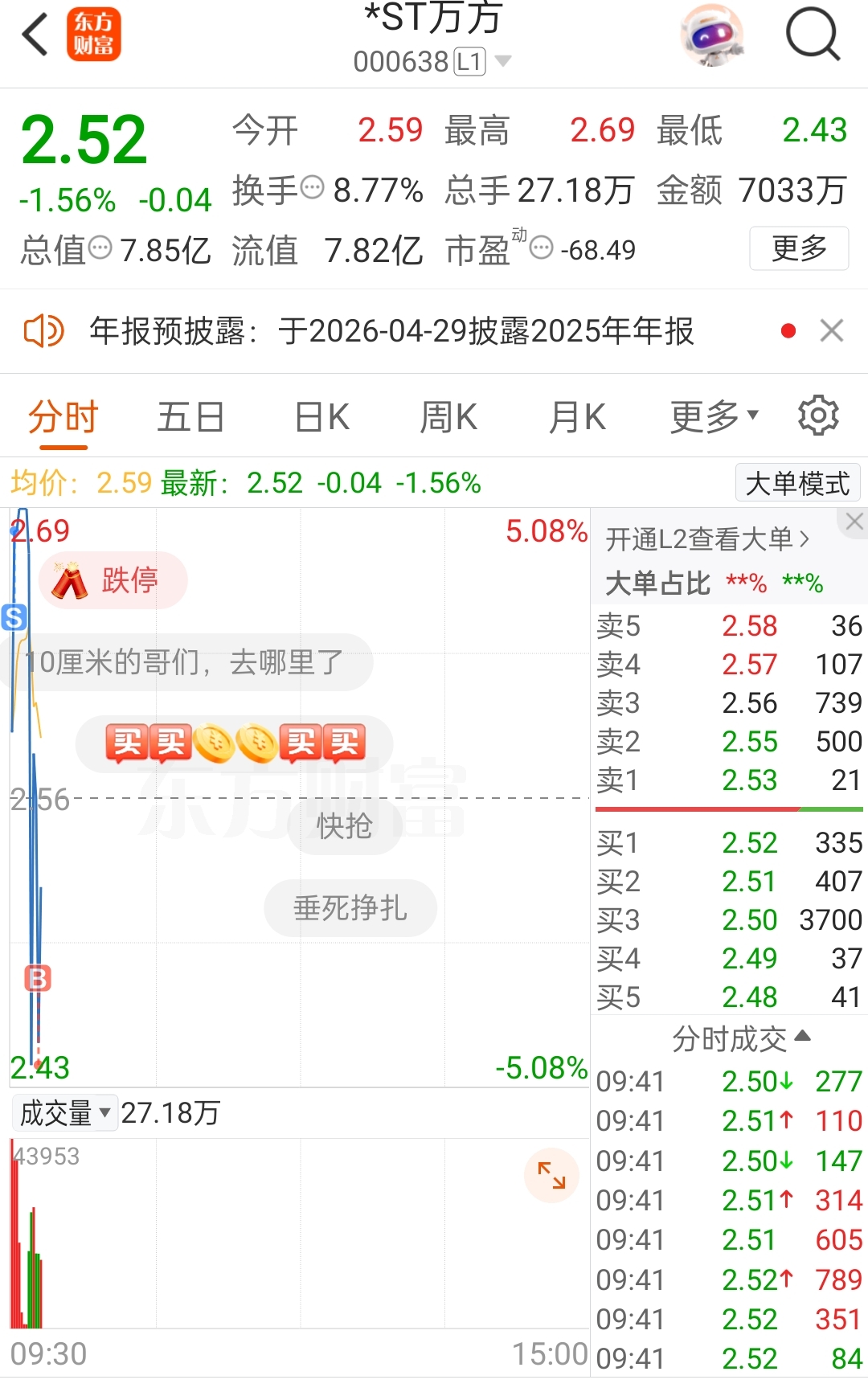 $*ST万方(SZ000638)$ 我也做T