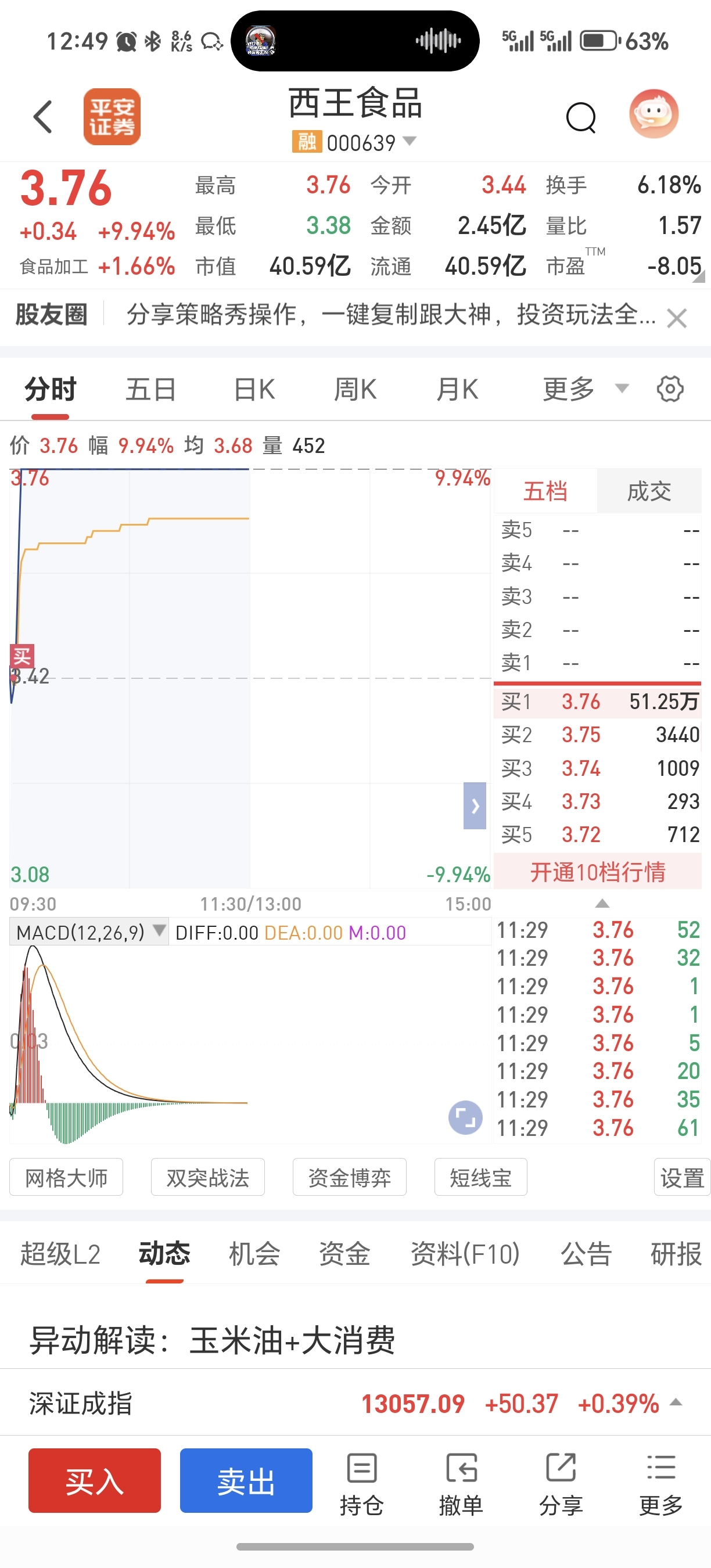 $西王食品(SZ000639)$ 今天第一次买对了时机,通常都是买了啥跌啥#股市怎么看#