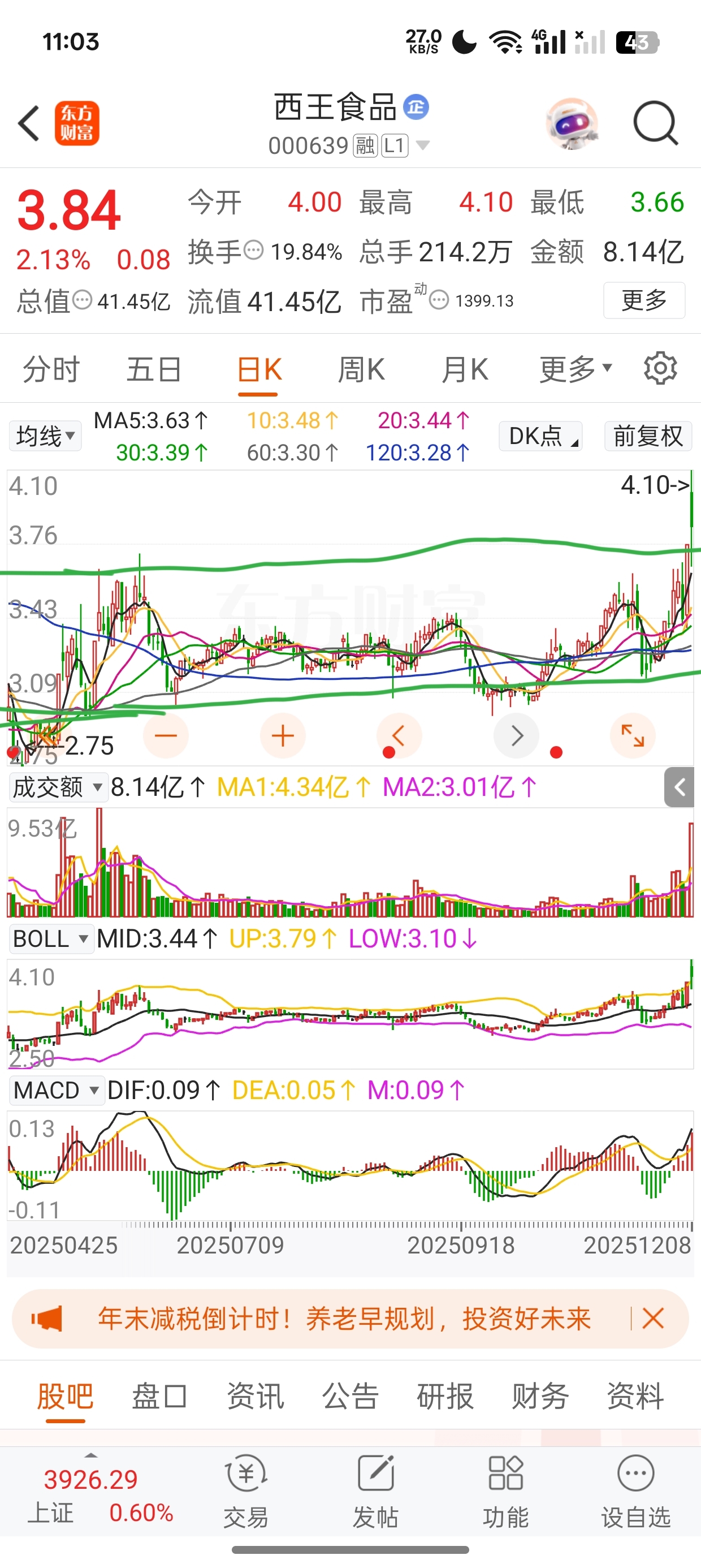 $西王食品(SZ000639)$ 你就装吧,才在3.69买了1/10,你下来我就买,不信就这点
