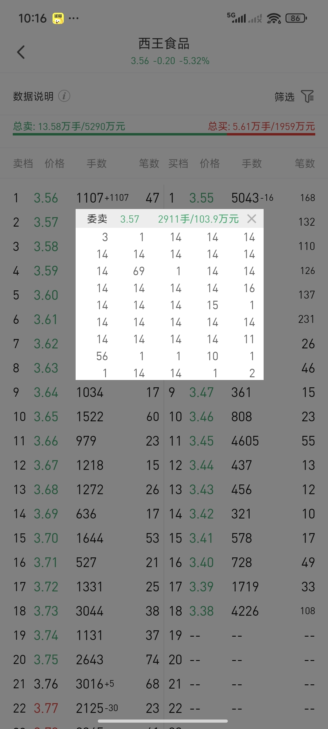 $西王食品(SZ000639)$ 卖盘全是量化,小单平铺,大单直接砸