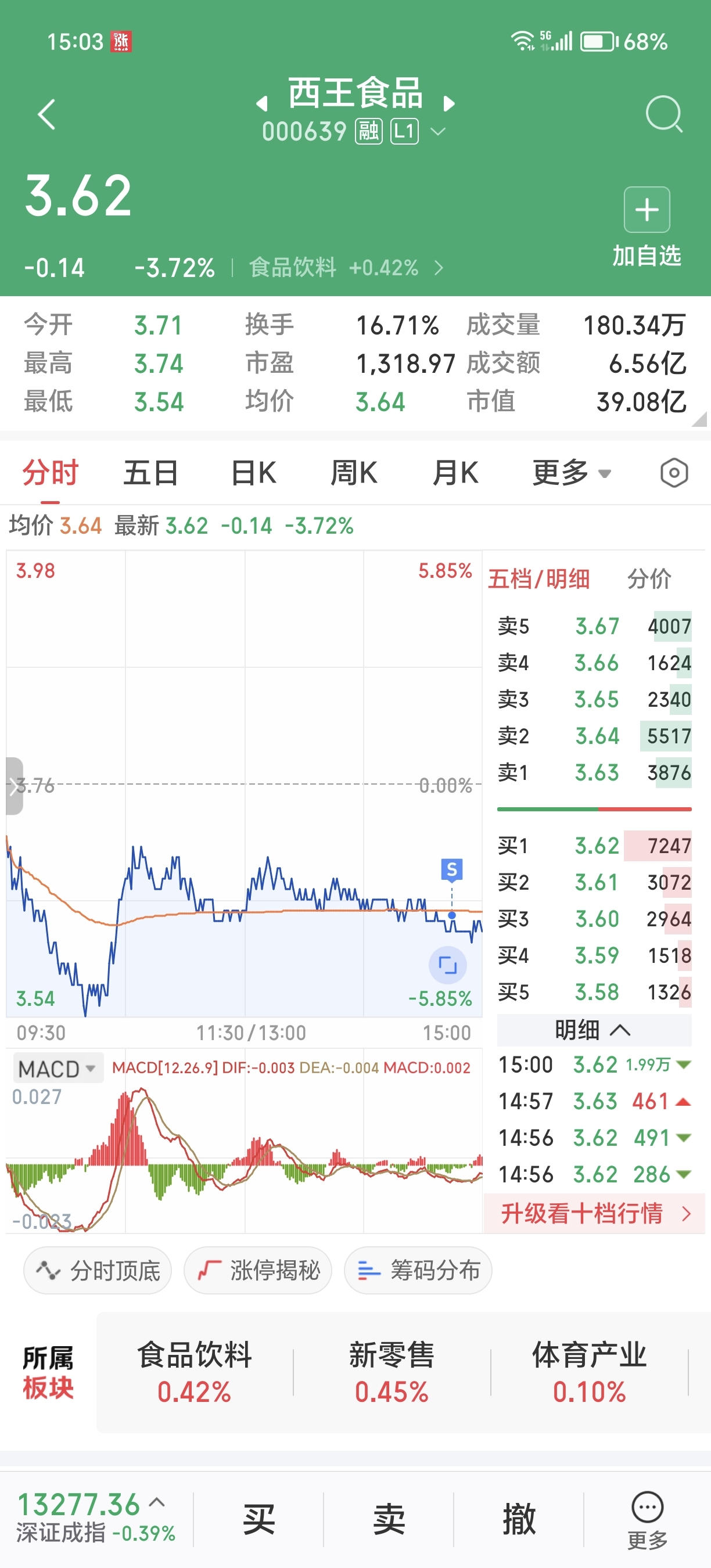 $西王食品(SZ000639)$ 西王里的主力真没出息,不陪你玩了尾盘一股不留全还给你。