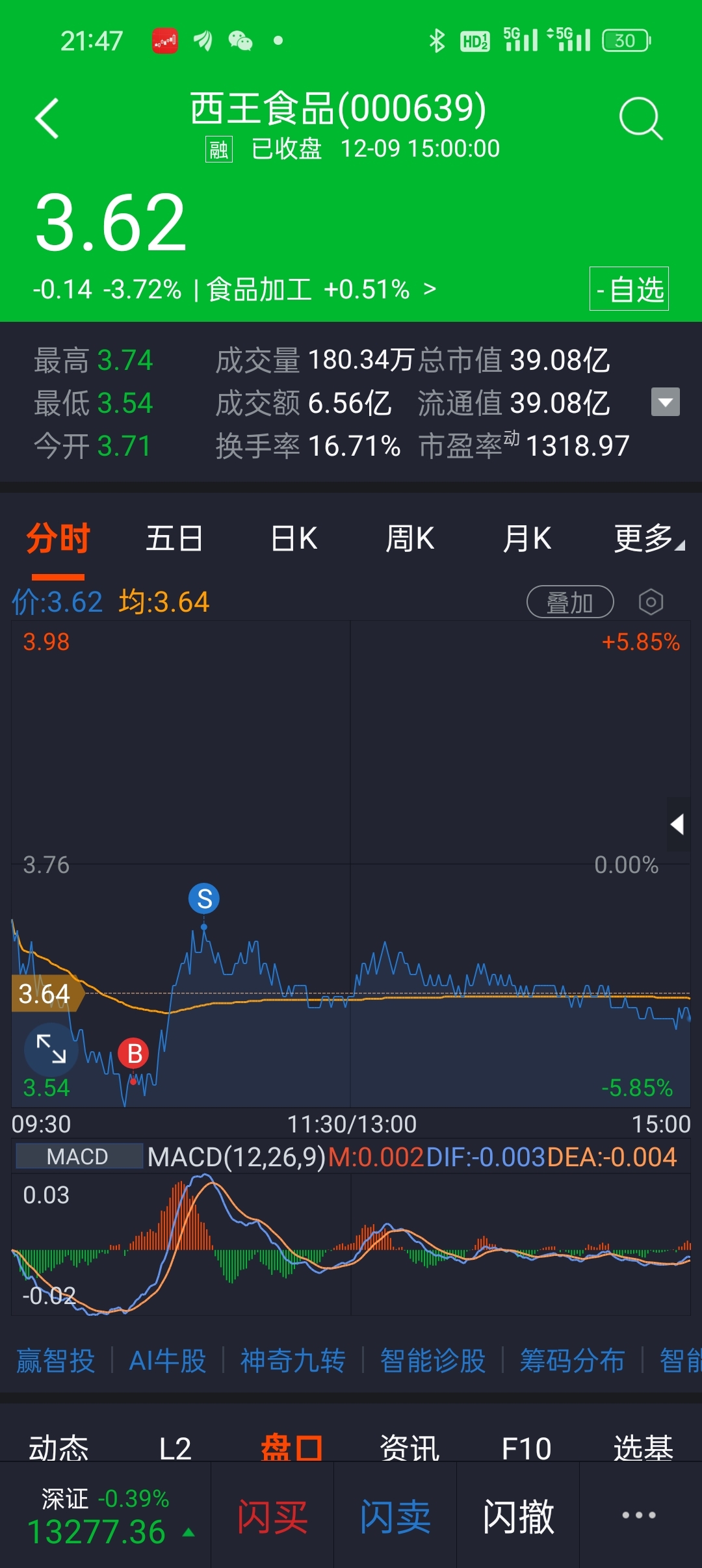 $西王食品(SZ000639)$ 涨停次日巨量阴,可能是个烂泥坑,绝对不是无底洞!明天低开继续T!