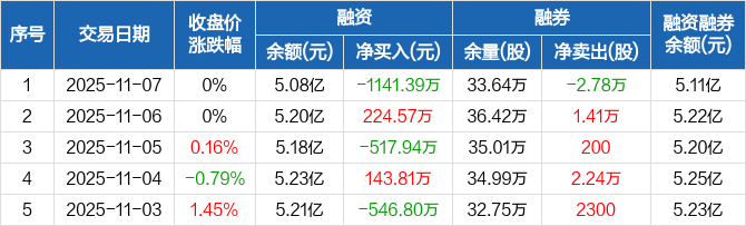 仁和药业:融资净偿还1141.39万元,融资余额5.08亿元(11-07)