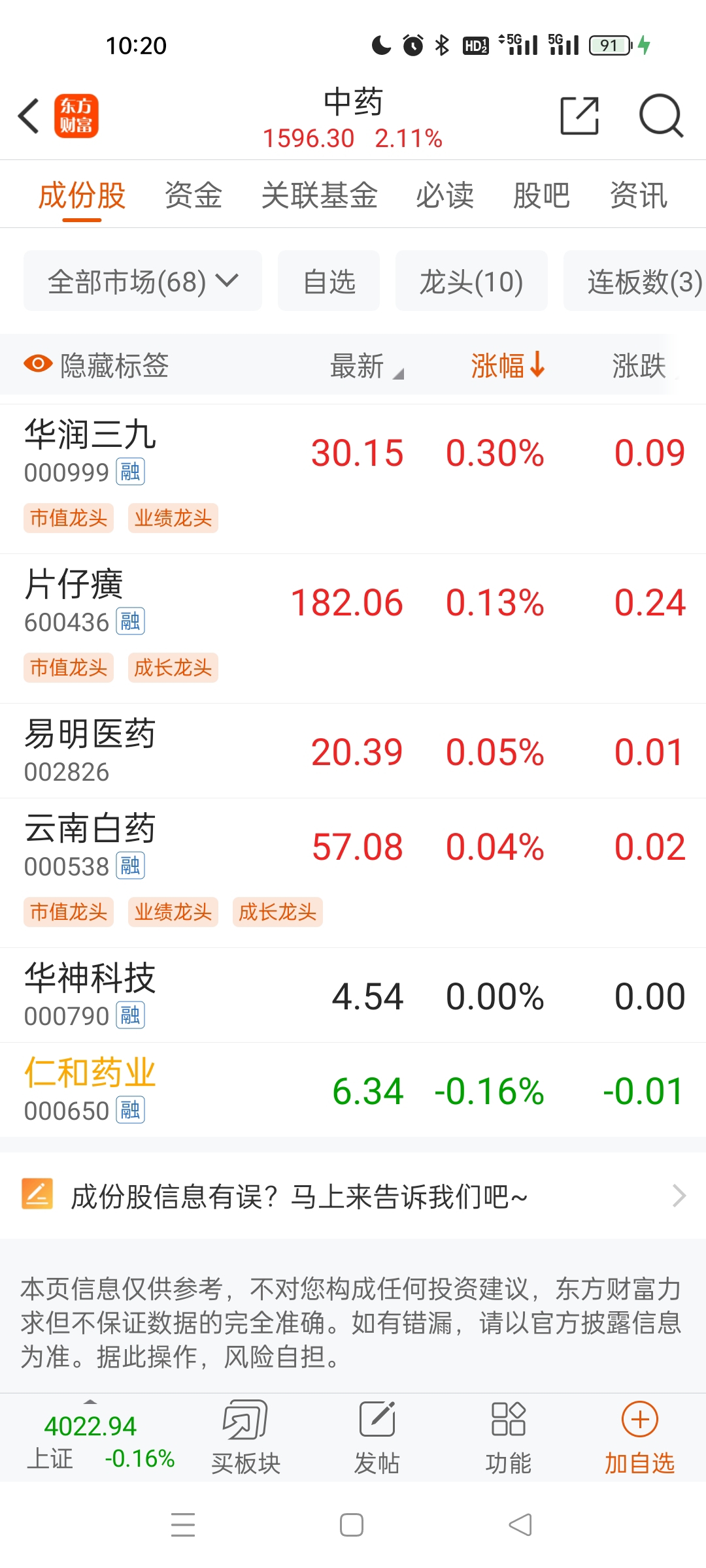 $仁和药业(SZ000650)$ 板块垫底的存在