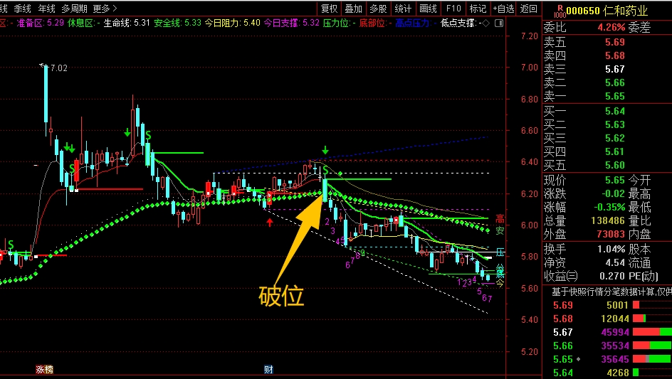$仁和药业(SZ000650)$ 中期趋势走弱了,前期高位回落下来,跌破了安全线6.20附近后没有能马上站稳,形成了破位风险,当时就需要大幅减仓应对,不然跌到现在就很被动了,目前来看没有止跌的趋势,暂时不考虑参与,等后期走稳了再说,不着急。#复盘记录# #炒股日记#