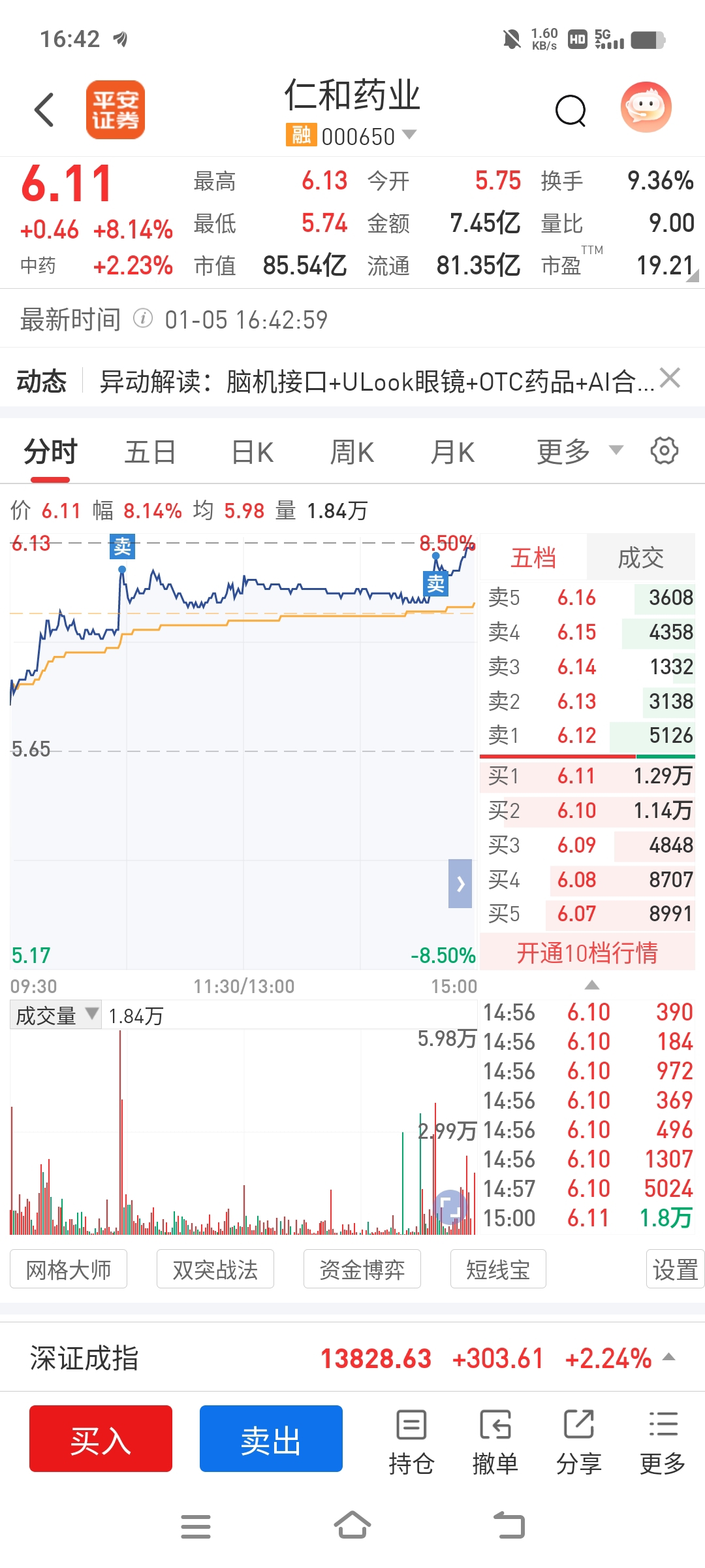 $仁和药业(SZ000650)$ 明天低开接回