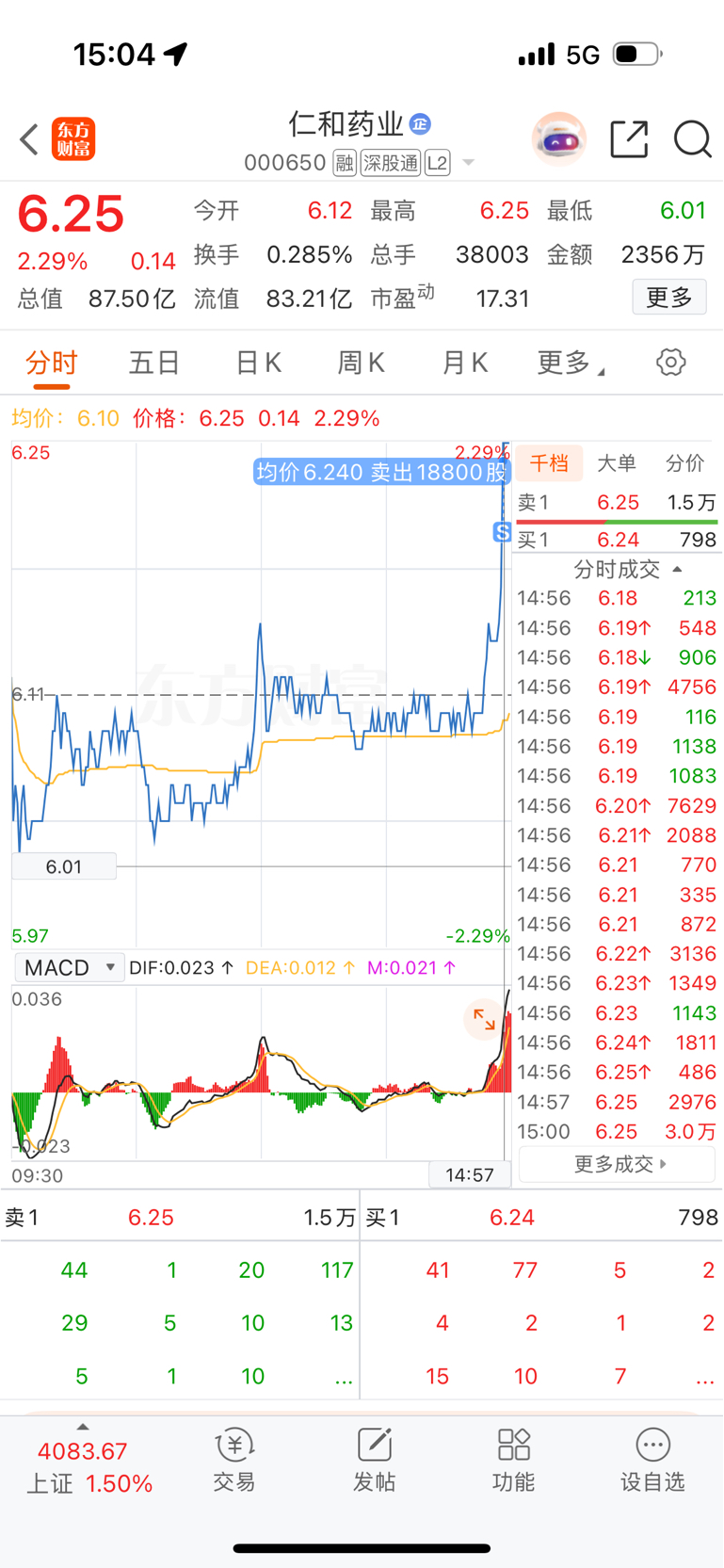 $仁和药业(SZ000650)$ 中午挂的,真出去了