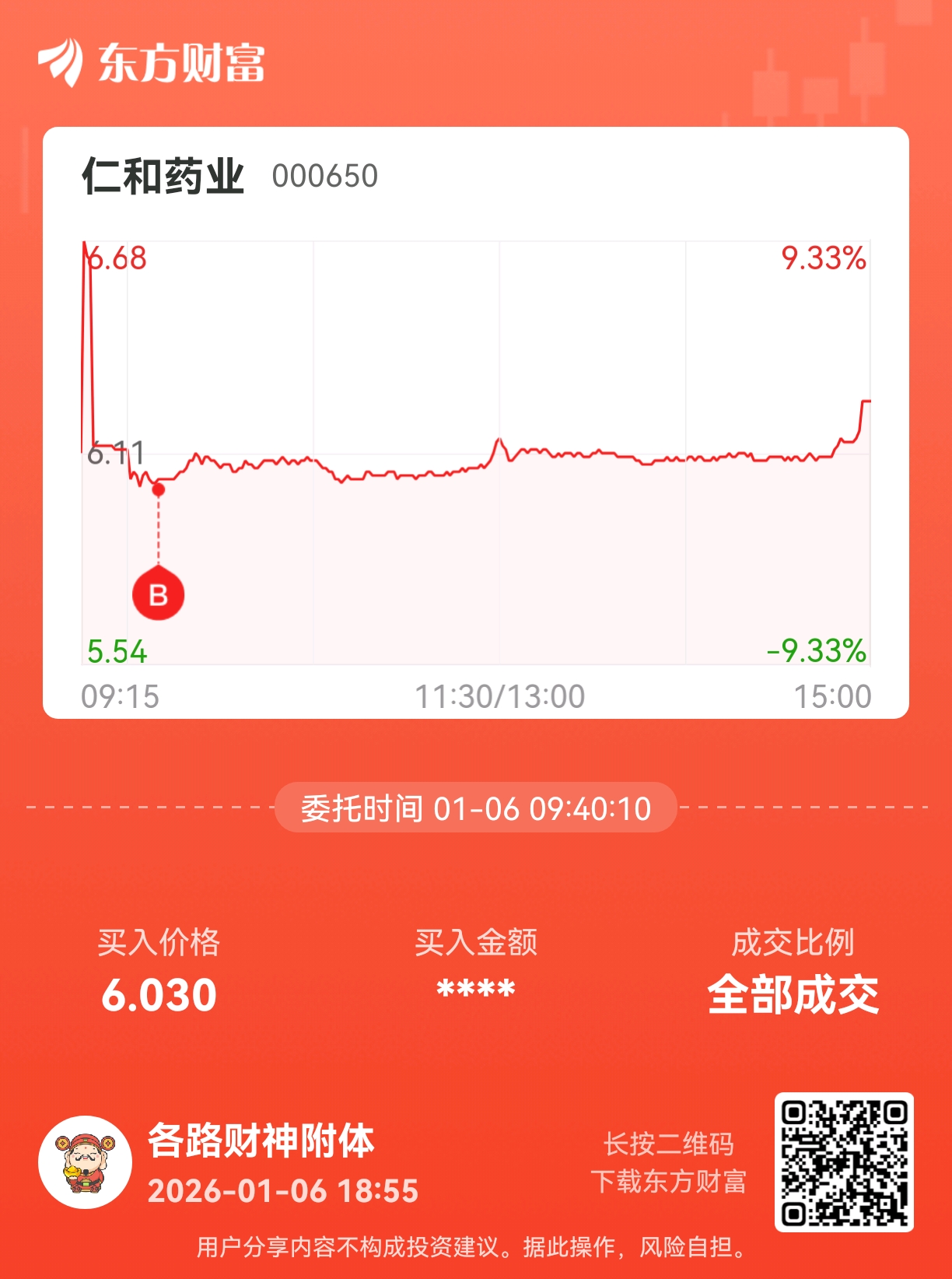 温馨提示: 1.根据《证券法》规定,禁止编造、传播虚假信息或者误导性信息,扰乱证券市场;2.用户在本社区发表的所有资料、言论等仅代表个人观点,与本网站立场无关,不对您构成任何投资建议。用户应基于自己的独立判断,自行决定证券投资并承担相应风险。《东方财富社区管理规定》
