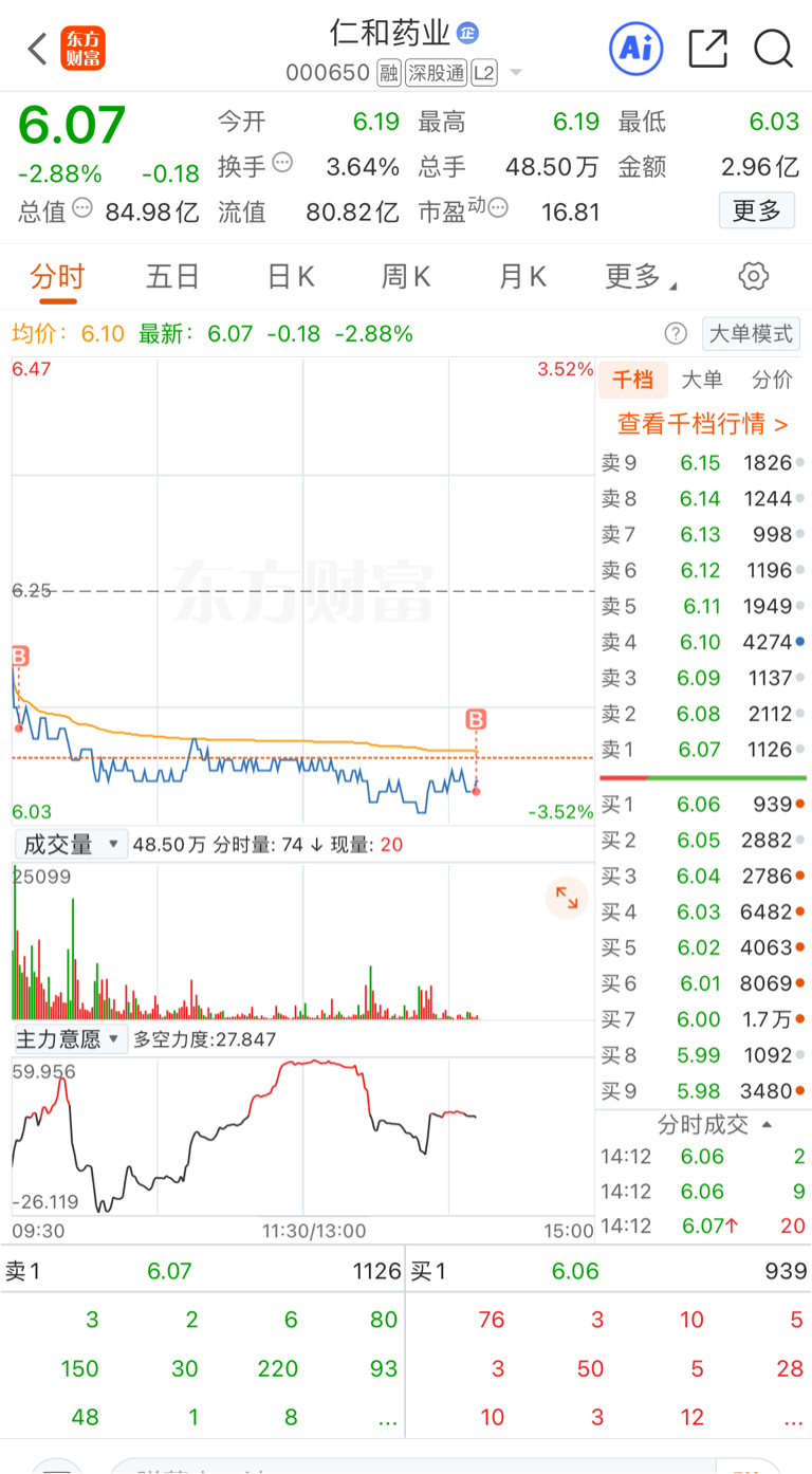 $仁和药业(SZ000650)$ 不要慌!