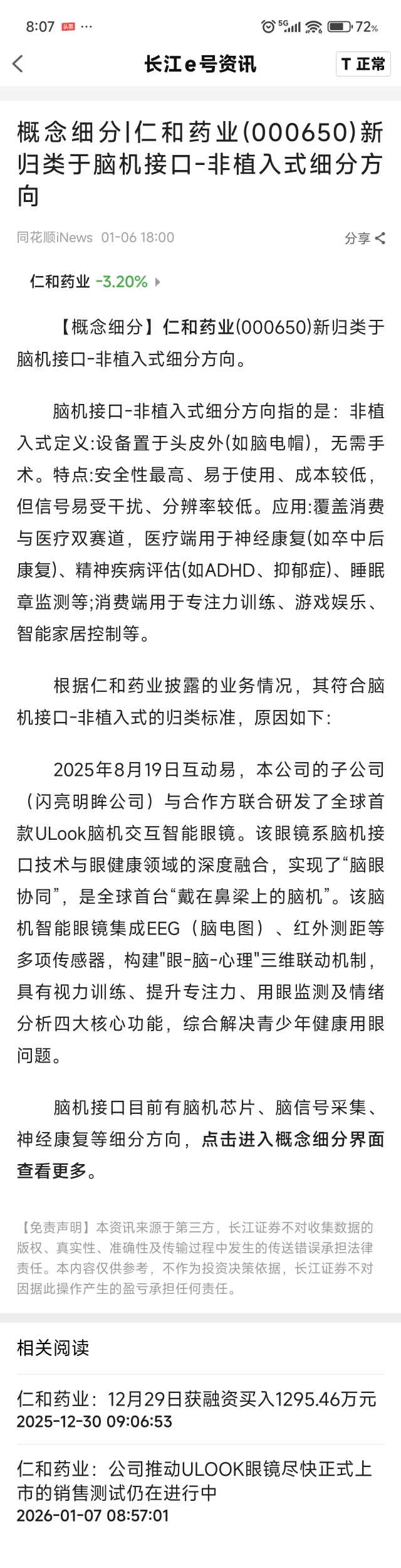 $仁和药业(SZ000650)$ 为什么大肚东不减持了?是否他认为估值太低,品牌和创新产业融合双重价值重估未体现实际估值?品牌现金流十口碑渠道销售更容易创新产品获客认可。其A1智能眼镜更安全,更为中老年人,年轻人,学生大众人群接受,反正都带眼镜,为什么不买A1带有保健功能的全球首款仁和闪亮A1智能眼镜。什么脑痛开口接入式不靠谱,危害性大,实为智商脑痛卖单开脑袋接痛口也。