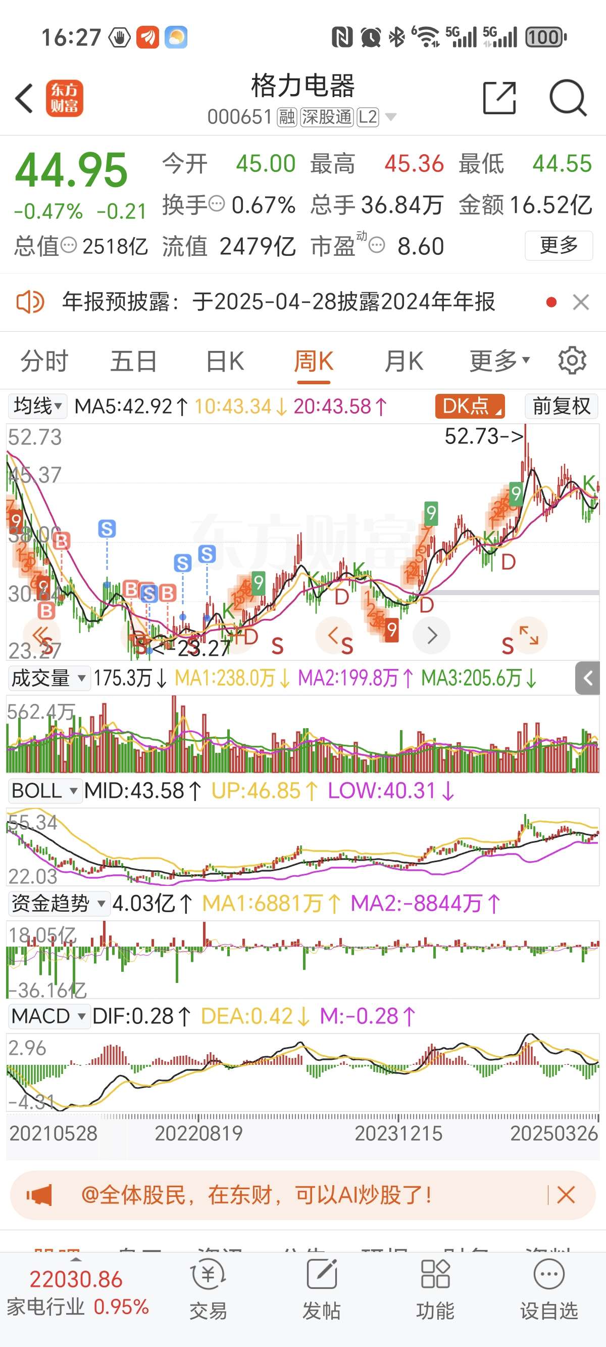 $格力电器(SZ000651)$ 拿不住啊