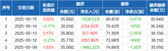 格力电器:融资净偿还3538.52万元,融资余额35.66亿元(05-15)