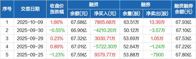 格力电器:融资余额67.68亿元,创近一年新高(10-09)
