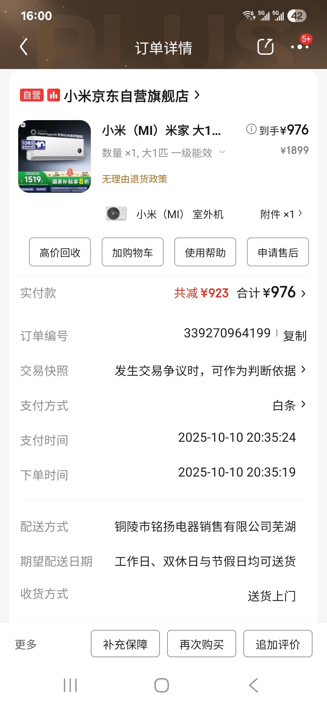 $格力电器(SZ000651)$ 我是格力的股东,今天买了一台小米空调,感受就是真的太便宜了,未购买格力的原因还是因为馕中羞涩吧,这台小米空调以旧换新的,加上补贴970多块钱入手,也是包修十年。我感觉目前格力底端市场保有量还是太低了,我特地问了下安装师傅,那两个师傅说他两就负责安装小米空调,我猜应该是小米的团队的。感觉格力小凉神的价格还要往下打,不让低端市场都让给小米了。同时建议一下格力电器维护好公司的市值,本人自从买了格力的股票后目前还亏了8个点,本来是想买格力的节能王子空调的,结果口袋没钱。。
