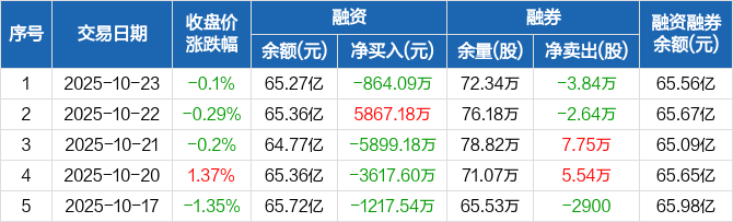 格力电器:融资净偿还864.09万元,融资余额65.27亿元(10-23)